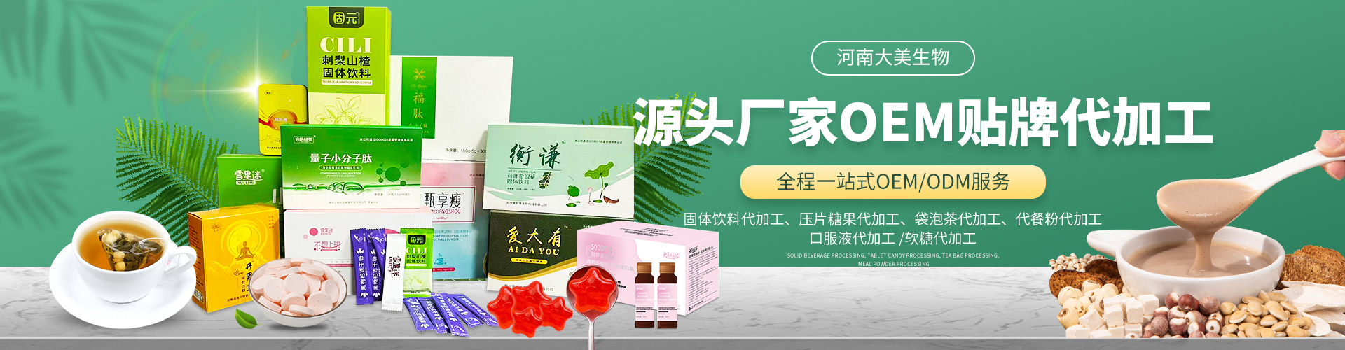 河南大美生物科技股份有限公司是從事顆粒劑、(固體飲料類),壓片糖果代加工等研發(fā)和銷售為一體的生產企業(yè)。公司依托自身的高科技研發(fā)隊伍和營銷團隊,為國內外客戶提供營養(yǎng)食品各劑型和規(guī)格的研制、生產、配方設計、批文申報等服務,并為客戶提供多種形式的流通渠道及產品銷售服務工作。 您的要求就是我們的使命!我們的宗旨是與客戶“合作共贏,攜手向前”,共同創(chuàng)造事業(yè)新的輝煌!